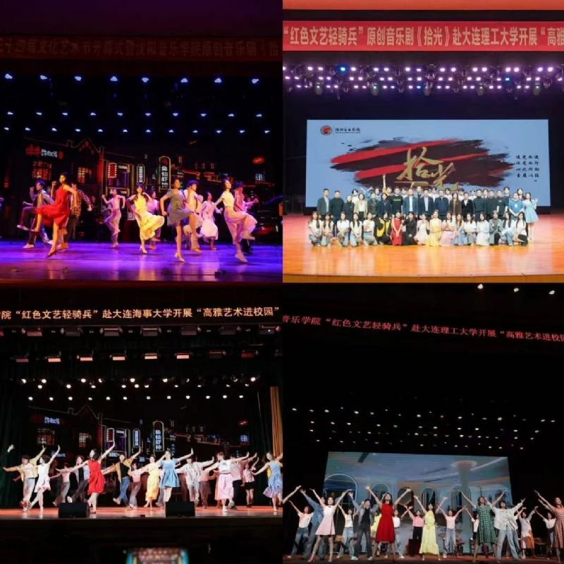 4月25日至28日,学院组织音乐剧系师生组建“红色文艺轻骑兵”小分队,赴大连理工大学、大连海事大学、辽宁师范大学、大连理工大学(盘锦校区)等高校,开展“高雅艺术进校园”活动,为高校师生表演原创音乐剧《拾光》。演出以丰富的舞台表现力与艺术感染力,为各高校师生献上一场凝聚艺术力量与青春梦想的视听盛宴,彰显音乐剧艺术的深厚底蕴与时代风采。