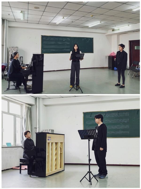 公开课上,演唱教研室教师以经典剧目唱段为载体,通过“角色共情教学法”引导学生突破技术局限,在作品的演绎中,实现声乐技术与精神传达的有机统一,并围绕“声乐技巧如何服务角色塑造”展开专题解析。同时,教师们还指导学生用“呼吸叙事”塑造角色矛盾心理,解决“情感驱动式发声”“呼吸控制戏剧节奏”等专业问题。艺术指导教研室教师指导学生根据演员情绪即兴调整伴奏织体与节奏,打造“会呼吸的音乐对话”,让同学们感悟“每个音符都是戏”的艺术真谛,进而加深对新时代文艺工作者社会责任的理解和认识。