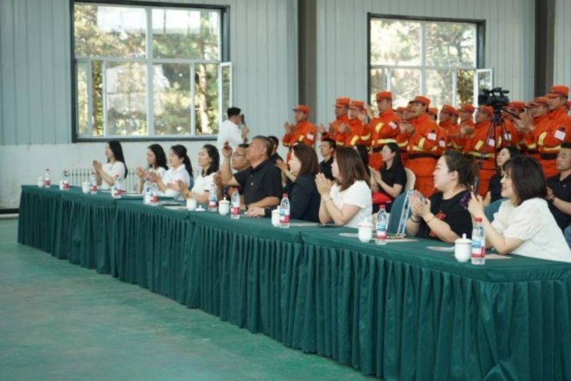 演出后的互动环节同样精彩纷呈。师生与消防员组队开展“蒙眼水带连接”“水带保龄球”“风力灭火机大比武”三项技能体验活动。这些活动以技能体验为桥梁,不仅让师生与消防员在协作中加深了对彼此职业的理解,更在热烈的互动氛围中构建起精神纽带,让实践互动成为诠释责任担当与文化共鸣的生动课堂。